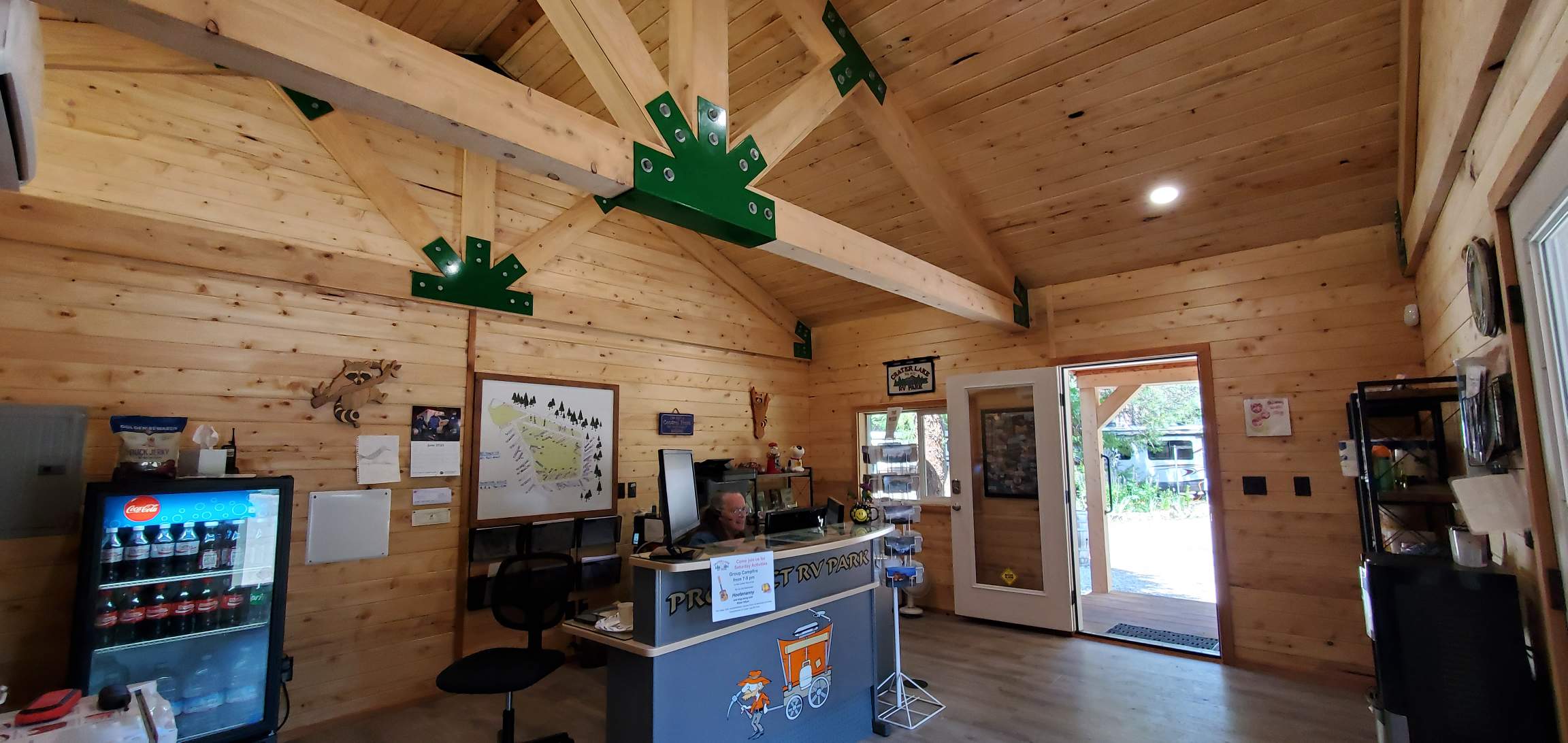 Office duties: taking reservations, answering phone calls, checking in guests, providing information, etc. Outside duties: guiding guests to sites, pumping propane, delivering firepits and wood, ice, etc., assisting guests as needed